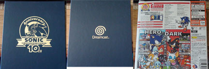 This is the Japan version of the 10th Anniversary Bonus Pack. You'll easily recognize it, because it looks nearly identical to the one released in the USA. (note small Japanese writing at the bottom under the logo) It contains the exact same items the USA got: music disk, booklet of info, golden color coin, fold out interior case thing. It DOES NOT contain a copy of SA2 Battle as some things imply. This is only the bonus goods. You may be able to buy it at GameChoiceClub.com in 2011, if any remain. It will cost about 50.00 though, as it is old. (Initially, it was free with purchase, for 2 days only--they have apparently obtained old unused stock)