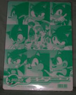 This is the front and back of a "Pencil Board". But what is it really? Is it a hard pad so you can draw in bed? It is supposed to go between the page of the notebook you are writing on, and the next. This avoids press/bleed through of inks. But if you're using pencil, that doesn't bleed. And if you don't stab down as you write letters, you're not going to engrave the paper anyway. But it's Sonic X, and it's interesting to look at, so...