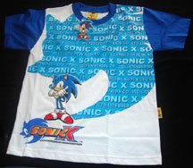 Here's an interesting design that uses the "Sonic X" title and also the actual copyright information (!) as a design feature! Repated over and over again in the logo sihlouette face, the words form the pattern.