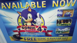 Here are 2 more Game Stop items. These are posters for Sonic 4, & Sonic Generations. The Sonic 4 one announces their bonus avatar hat that you could get from the store. The Generations one simply announces when the game will be available. Combined with the posters above, Gamestop seems to have had a rather large fanfare of Sonic announcing items. Usually a good sign! (literally)