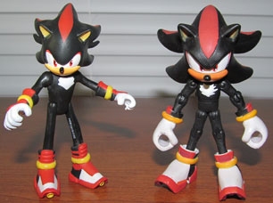 There are some handy comparison photos so you can see Jazwares vs Tomy. Many people are surprised to find the less detailed Tomys about the same size as the Jazwares figures. Keep in mind the Boomstyle differences (longer torsos, etc) while looking at the figures faces/details etc. Metal Sonic's fused fingers, lack of metallic paint, & Shadow's wrongly placed red eye edge details stand out. Certainly, Tomy's figures are still fine, they paid attention to the Boom show style, so they're collectible enough, but they just don't seem to have the extra mile Jazwares did.