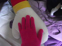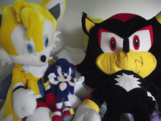 A Giant Shadow appears! Toy Network didn't limit themselves to huge Sonic & Tails, they've done a Shadow as well. The first shows him with their biggest Tails, and he seems even larger than that. In the middle, there's a real hand on the plush hand...so you can tell just how big this doll really is. He's not like the super long/noodly ones who just added length, the whole plus is proportionally (well fairly) big. The inset (right) shows the tag you'll find if you can manage to get one of these giant plushes and find the space to keep it, too because it's over 3 feet tall.