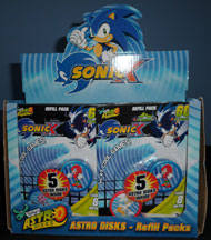 At the image gallary is a whole set, in the original retail display box of Astro Disk refills. They're SonicX theme, like above and each pack has 60 disks included. These are "Moose's" (the producing company) They're to go with the above launcher set for the 'cool games'. You could buy these at the Woolworth's store during the time of Sonic X. Photo & owned by UltimateFreiza