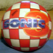 Here is a simple ball featuring Sonic 3 theme. This is a medium-size smooth-surface ball often called a "Play Ball" which is made of semi-soft rubber and is full of air. It can be used in outdoor games and is fairly bouncy. Despite being a rather simple item, it has good design and is colorful.