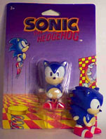 Wind up toys! These are rather Japanese looking, but they were supposed to have been released in the USA, and England as well. Where are Tails' tails? They are small and moulded on, which seems somewhat lack-luster. The back-cards for both are identical.