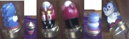 The figures appear scrunched so that the tops will still balance, their pose has to be this way. Sonic is clearly early, as they hadn't decided yet just how his spikes should be. If you look at the second photo it also proves that Eggman can spin on his head as well as on his base!