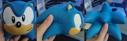This is a "Mega Squishme", which is a larger-than-usual 'squeeze foam' type of toy. This is produced by Just Toys LLC in 2020. It IS on Amazon, but it can also be in stores as well as sold in Europe. The whole thing is that solid stress-reliever dense foam where it will 'slo-rise' back into shape when squeezed. The package is a bag with hang-card, and the measure there in the factory photo (with background) has it at about 6 inches. With the fan photo below that has hand in it, you can see the real size. This is about 16 dollars but...looking at the fan photo below you can see that they weren't careful with it and the eyes are uneven to a fairly large degree! Look at that! One is so much higher than the other...it just doesn't look right. The sculpt is otherwise fine, and the colors are decent otherwise this thing would go to mutant gear. It's very unfair to have such a price and then some of them come out that poorly mis-stamped.