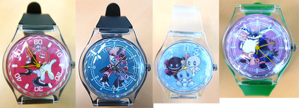 The idea was sound, it's just fakers have sort of turned it to trash in the meantime. You can see they really went all out with the details. You could get Sonic, Tails, Knuckles, Rouge, Eggman, E102 Gamma, Chao & Big. The numbers could be regular, triangles (no numbers) lines, seconds (to 60, increments at either 20 or 5) or tiny numbers (Rouge's) Likely the E & Eggman watches are least common...however all of them are pretty rare anyway. The campaign was only somewhat-promoted, and it's thought they were also a bit costly.
